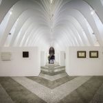 La bóveda de esta sala subterránea, de un blanco inmaculado, es una sucesión de arcos parabólicos, motivo habitual en Calatrava.